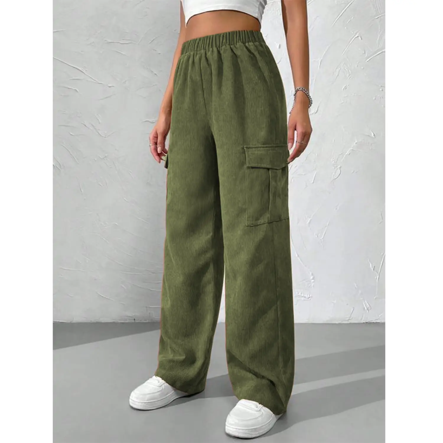 Green Corduroy Cargo Baggy Pant